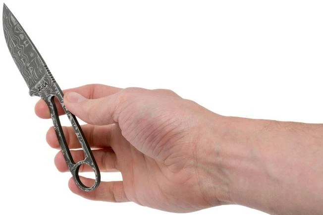 The ESEE Izula Damascus is a special limited edition version of the famous ESEE Izula. Instead of the standard carbon steel this version is made from damascus. Steel that is formed by two forging two types of steel on top of each other, then folding it. This process is repeated a couple of times until the steel becomes a nice veined whole.