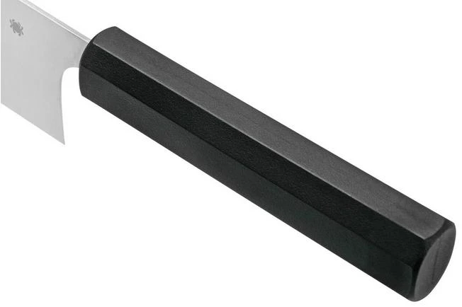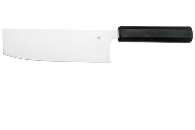 The Spyderco Nakiri knife from the Murray Carter Minarai collection is stunning in all its simplicity. Nakiri means ‘vegetable slicer’. The unique, rectangular shape makes this knife perfect when cutting all types of vegetables. The tip of the knife is slightly rounded to make sure you can also quickly cut vegetables from an angle. But also finely cutting herbs is a piece of cake.
