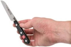 Cutting and peeling fruit and vegetables will be a lot easier with this vegetable knife from the Wüsthof Classic collection. Because the blade is nice and short you can namely work from your wrist. Great for your accuracy.